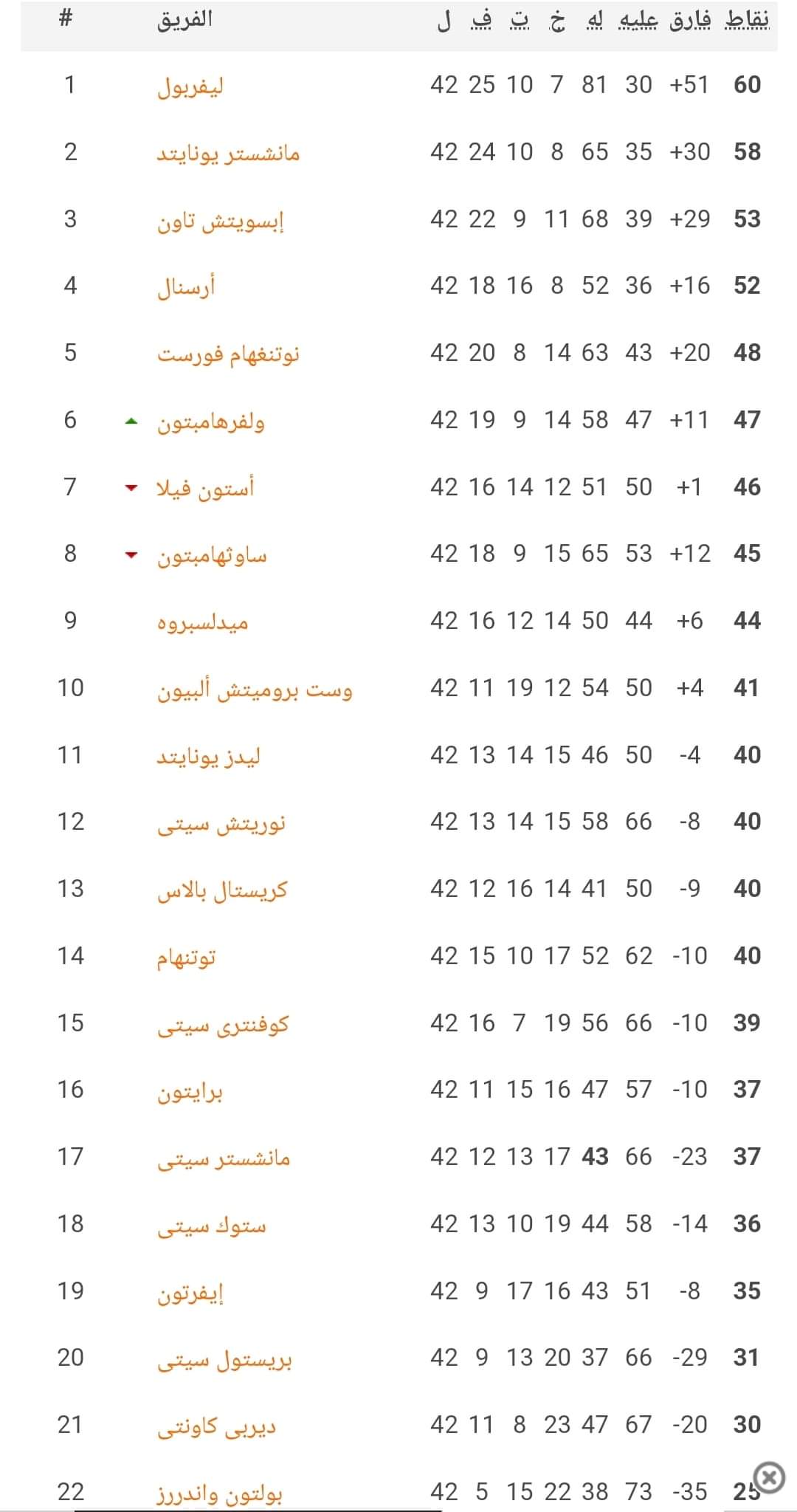 🏴 | ترتيب الدوري الانجليزي