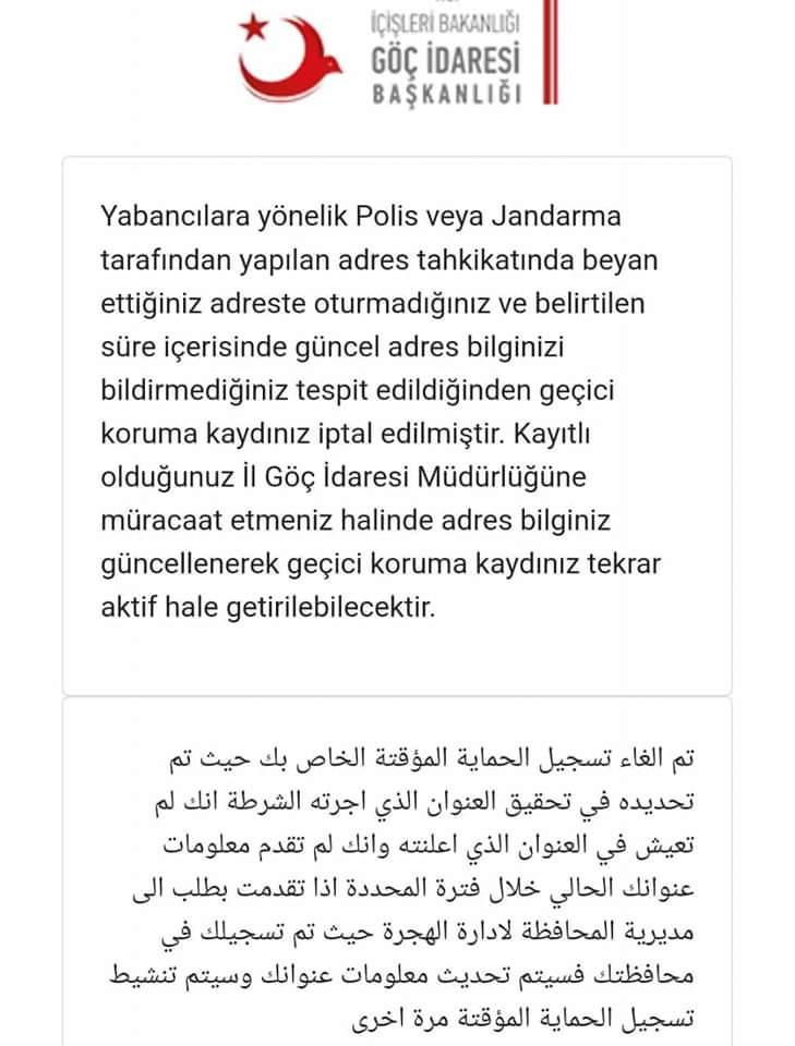 توضيح مهم جداً بخصوص الرسالة الأخيرة التي وصلت اليوم الأربعاء .2022 من رئاسة الهجرة العامة في أنقرة إلى معظم السوريين