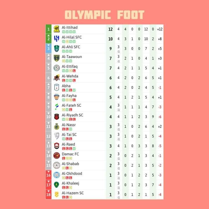ترتيب الدوري السعودي بعد فوز اتحاد جدة على الوحدة في الجولة الرابعة بقيادة رونالدو.. النصر يخوض اختبارا صعبا أمام الشباب