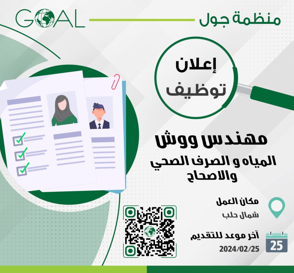 فرصة عمل مميزة في منظمة جول: مهندس ووش (المياه والصرف الصحي والاصحاح) هل تبحث عن فرصة عمل مميزة تُحدث