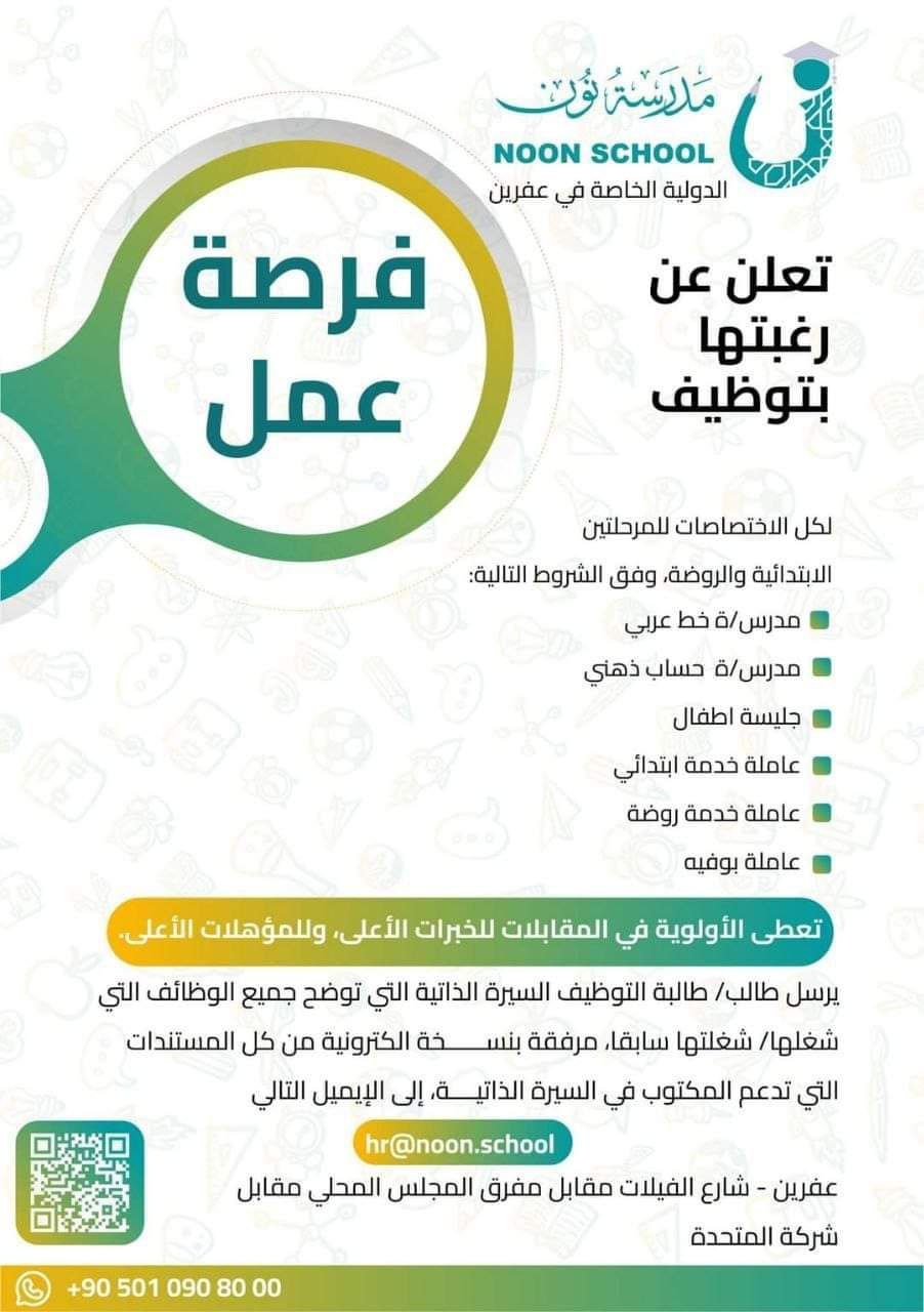 مدة الإعلان الوظيفي: ينتهي التقديم حتى الساعة الخامسة عصرا يوم السبت 09-09-2023.